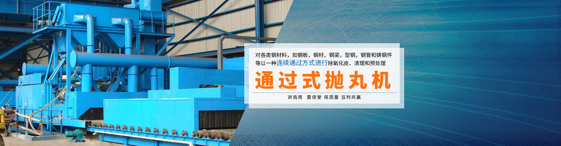 公司主營:噴砂房,拋丸機系列,通過式拋丸機,履帶式拋丸機,吊鉤式拋丸機,轉臺式拋丸機,滾筒式拋丸機